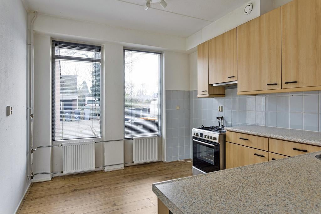 In affitto: una casa con un ampio giardino nel quartiere Peelo. Questa abitazione si trova in una corte a misura di bambino e offre buone strutture nei dintorni, come scuole elementari, un centro commerciale e buone vie di accesso all'A28. Al piano terra troverai un ingresso con guardaroba, un bagno, un soggiorno rivolto al giardino, una serra e una cucina semi-aperta con cappa, forno e cucina a gas. Il primo piano ha 3 camere da letto e un bagno con doccia, lavandino e WC. Una scala fissa conduce al secondo piano con una quarta camera. La proprietà è di 100 m², ha 6 stanze ed è disponibile per un affitto mensile di 1.295 €. L'abitazione è disponibile dal 1 aprile 2026, con un periodo di affitto minimo di 12 mesi.