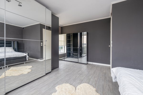 Dalla landing, raggiungi le varie stanze. La generosa camera matrimoniale di ben 24 m² è rifinita in modo elegante e moderno con pareti lisce e un pavimento ordinato. Ciò che rende questa stanza particolarmente lussuosa è l'accesso diretto al balcone, dove puoi goderti il sole in pace ogni mattina.
