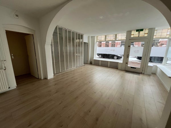 Lo spazio adiacente può essere utilizzato sia come ufficio che come abitazione e consiste in un ingresso, un ampio soggiorno-lavoro sul retro di ca. 45 m2 con accesso allo spazio esterno di ca. 20 m2, adiacente a uno studio o camera da letto sul davanti di ca. 20 m2, corridoio, cucina spaziosa di ca. 12 m2, bagno semplice con doccia e un WC separato.