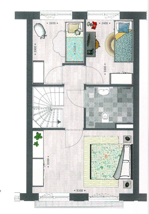 Al primo e secondo piano troviamo quattro camere da letto. Nella parte anteriore della casa, al primo e secondo piano, ci sono due camere simili di circa 16 m². Nella parte posteriore, al primo piano, troviamo la terza e la quarta camera da letto. Inoltre, al primo piano troviamo un ampio e moderno bagno con lavandino doppio, vasca con doccia e il secondo bagno. Infine, al secondo piano troviamo un'ampia camera/area che può essere utilizzata idealmente come ufficio, magazzino, ecc.