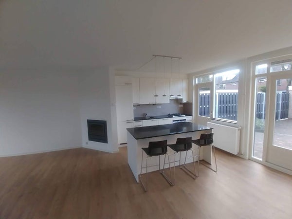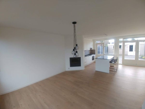 Una casa a schiera con grande garage vicino al centro di Eemnes con giardino a bassa manutenzione esposto a sud-ovest. La