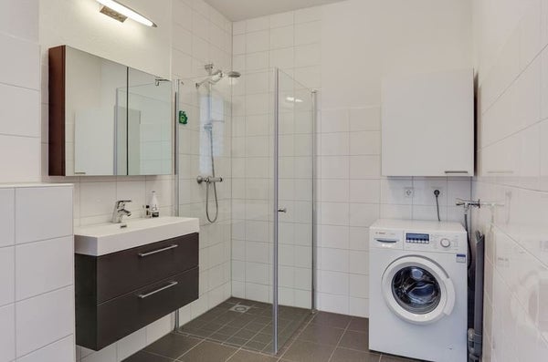 Ampio corridoio che porta a due camere da letto e al bagno. Camere da letto con pavimento laminato e accesso alla terrazza sul tetto (ca. 5 m²). La terrazza sul tetto si affaccia a nord-est e offre una vista aperta e gradevole. Bagno moderno, completamente piastrellato, dotato di cabine doccia in vetro, wc sospeso, mobile con lavabo e allacciamento per la lavatrice.
