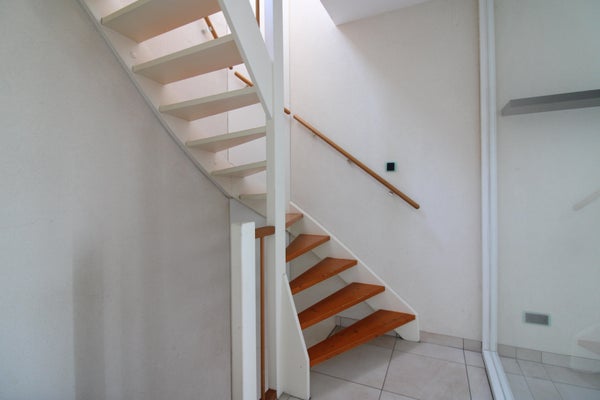 Dalla rampa al secondo piano si accede a 2 camere da letto e al secondo bagno. Entrambe le camere da letto sono dotate di pavimento in laminato. Il bagno è piastrellato e dotato di vasca, WC a parete e lavabo fisso. Si trova anche su questo piano la rilassante terrazza sul tetto con nuova pavimentazione. Qui puoi goderti tranquillamente il bel tempo.