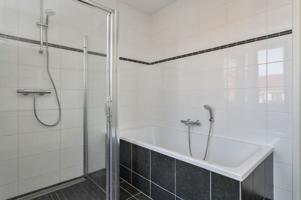 Attraverso il corridoio hai accesso a tre ampie camere da letto, un bagno separato e un bagno di lusso. Questo bagno è dotato di una comoda vasca da bagno, una doccia separata, un elegante mobile da bagno con due lavandini e un moderno radiatore di design. Tutto è arredato per offrire il massimo comfort e comodità.