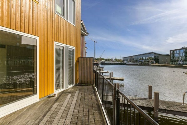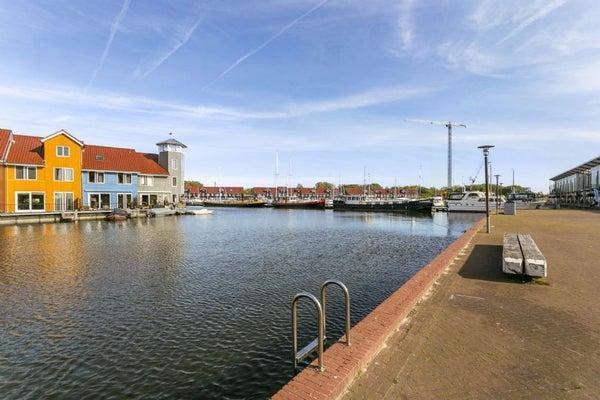 Nel mezzo dell'acqua del porto turistico si trova questa splendida casa sul molo. Per queste case con un'architettura di stile scandinavo, è stato utilizzato molto legno con colori vivaci. Queste case rappresentano un importante punto di riferimento nella città di Groningen.