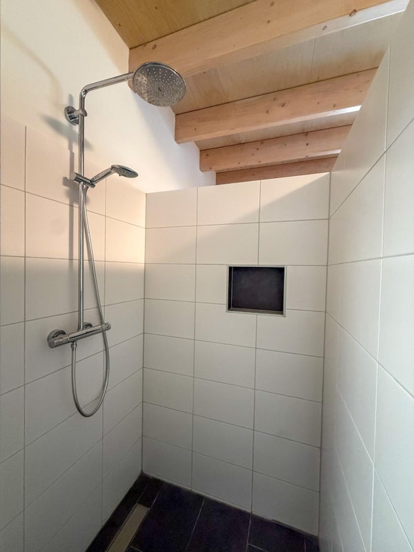 Camera da letto (può essere chiusa con porte scorrevoli). Bagno privato con doccia (a pioggia) e mobile lavabo. Dall'altro lato del bagno c'è un angolo per un cabina armadio.