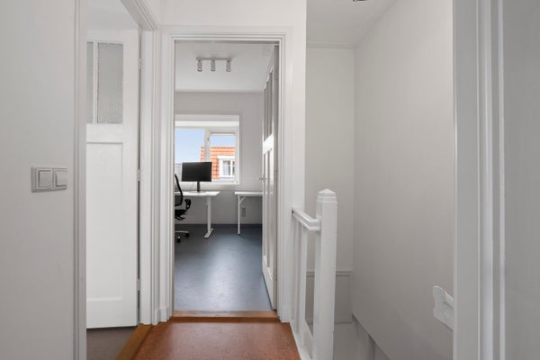 Disimpegno con spazio di archiviazione e accesso a due camere da letto di generose dimensioni. Inoltre, diversi armadi a muro offrono ampio spazio per riporre.