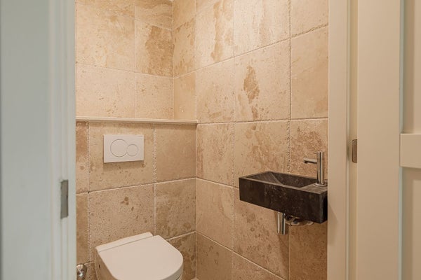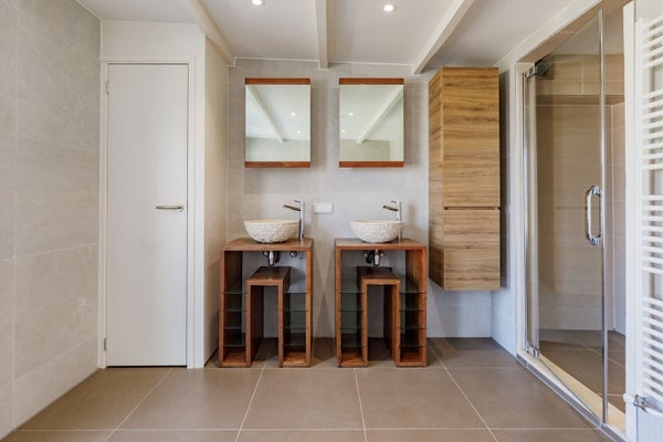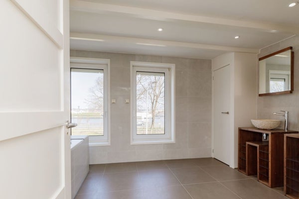 - Bagno molto spazioso e lussuoso con doccia a pioggia, belli lavabi, impianto di riscaldamento e grande vasca da bagno con vista sul canale e sulla chiusa;