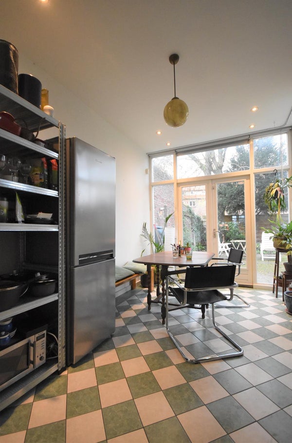 Casa a schiera degli anni '30 sorprendentemente spaziosa e accogliente, caratterizzata da dettagli autentici e una piacevole luce naturale. L'immobile dispone di un ampio soggiorno e di una cucina moderna nell'estensione, che offre spazio abitativo e comfort extra. Inoltre, ci sono tre camere da letto adatte e un bel giardino. La proprietà è situata in una posizione favorevole a pochi passi dal centro, con vari servizi, negozi e ristoranti a portata di mano.