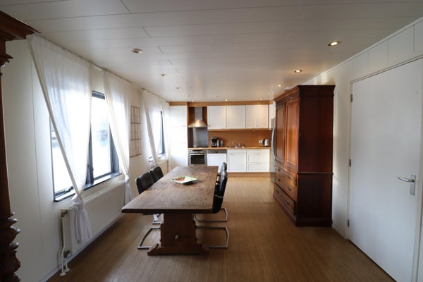 Su un tranquillo corso d'acqua non navigabile presso la diga su Stuwweg si trova questa spaziosa e suggestiva casa galleggiante. Un luogo di vita unico dove spazio, comfort e un'atmosfera rilassata si uniscono. Ideale per famiglie, espatriati, dipendenti o studenti che danno valore alla privacy e a un ambiente di vita gradevole.