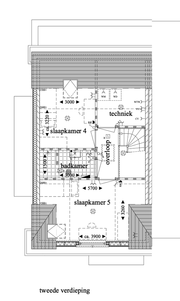 Piano di atterraggio, ripostiglio con allacciamento per lavatrice, posizionamento della caldaia combinata e impianto di recupero del calore. 4a camera da letto sul retro e 5a camera da letto nella parte anteriore. 2° bagno completo di doccia walk-in e mobile lavabo.
