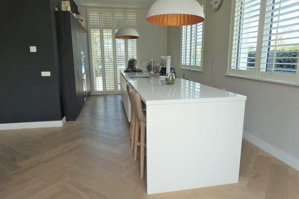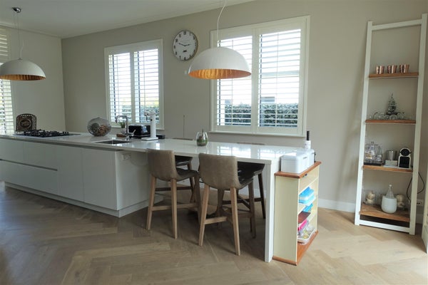La sontuosa casa ha un ingresso centrale che conferisce all'abitazione una disposizione equilibrata. Attraverso le doppie porte, si accede al grande e luminoso spazio abitativo con una notevole veranda. Colpisce la cucina di lusso, dal design moderno, con un grande isola di cottura. In tutta la casa è stata creata un'unità con pavimenti in rovere affumicato e oliato e l'uso di colori neutri.