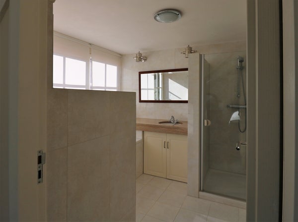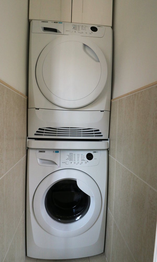 - Ingresso con pavimento in ceramica chiara; zona WC con toilet sospeso e lavabo, corridoio con predisposizione per lavatrice e asciugatrice.