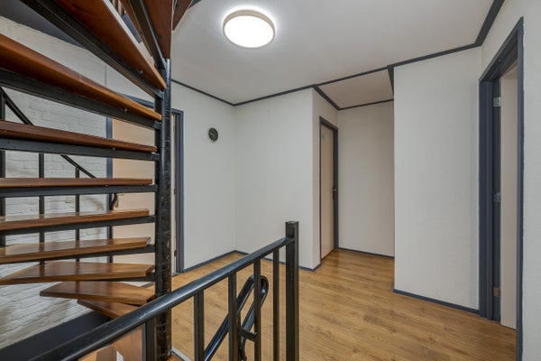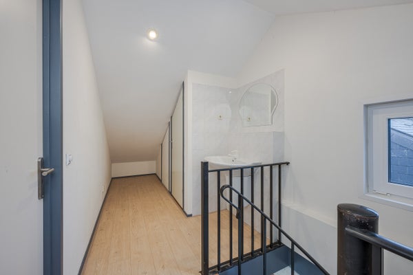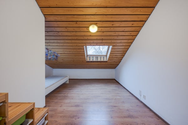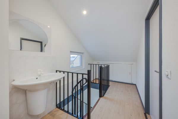 Disimpegno con lavabo e posizione per la caldaia combinata. Da qui si accede alla camera sottotetto, ideale come ulteriore spazio per dormire, lavorare o hobby.