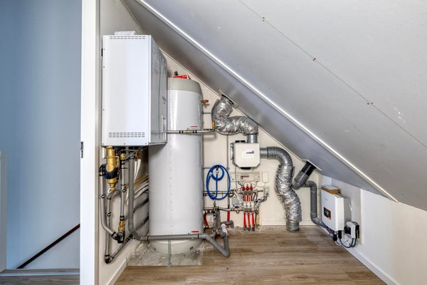 - Zona tecnica con allacci per lavatrice e impianto della pompa di calore e boiler.