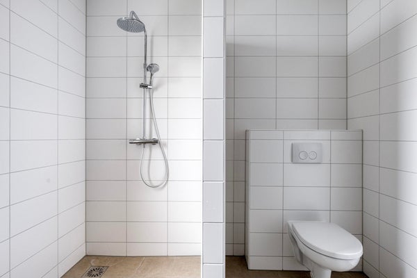 - Moderno bagno con doccia a pavimento, 2° bagno, lavabo con mobile, spazio aggiuntivo e radiatore per gli asciugamani.