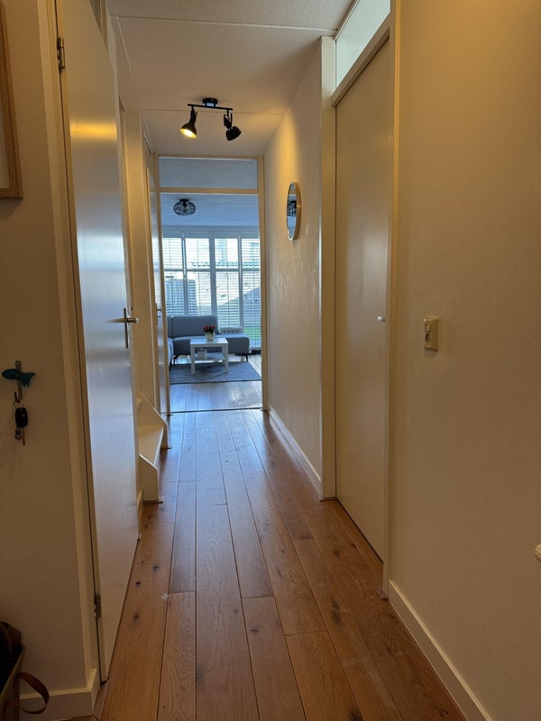 Il primo e il secondo piano sono dotati di pavimenti in laminato chiaro. Il corridoio dà accesso a tre camere da letto, tra cui una grande camera con aria condizionata, e al bagno. Il bagno compatto è dotato di una vasca da bagno con rubinetto della doccia, lavabo e toilet. Inoltre, c'è uno spazio di stoccaggio extra nel corridoio.