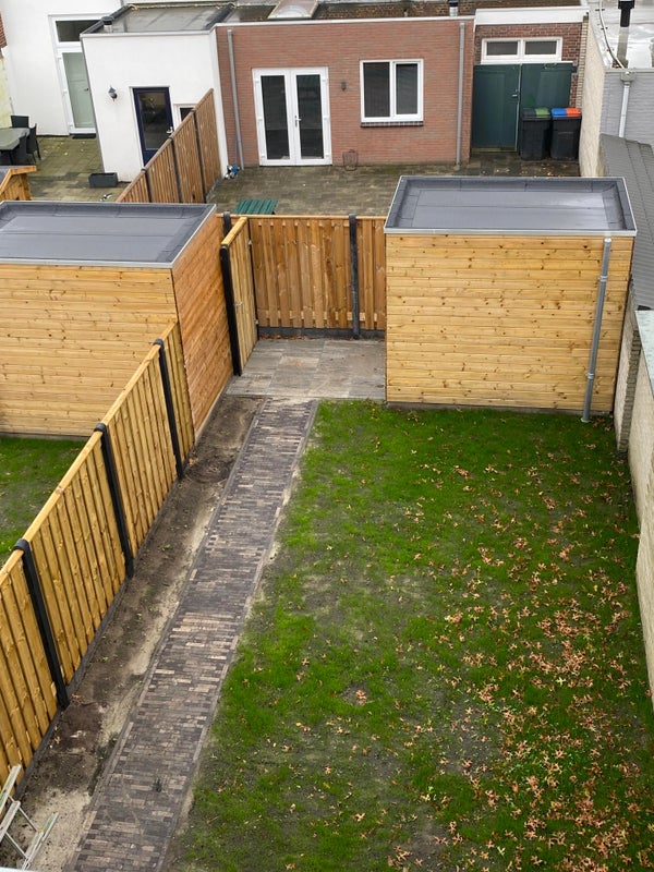Il giardino è esposto a sud-ovest e ha una piacevole dimensione di circa 72 m2. C'è un magazzino in legno (circa 6 m2) e un proprio accesso posteriore. Ci sono ampie possibilità di parcheggio davanti alla porta.