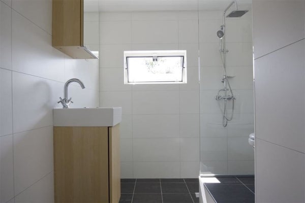 Bagno 1 con WC, doccia e lavabo, e bagno 2 con doppio lavabo, vasca e grande doccia walk-in.