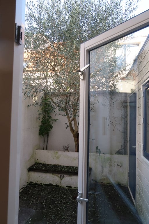 Attraverso la cucina si accede al cozzy e a bassa manutenzione giardino cittadino. Qui è presente un'aiuola, un ulivo e l'accesso al ripostiglio dove si trova il collegamento per la lavatrice.