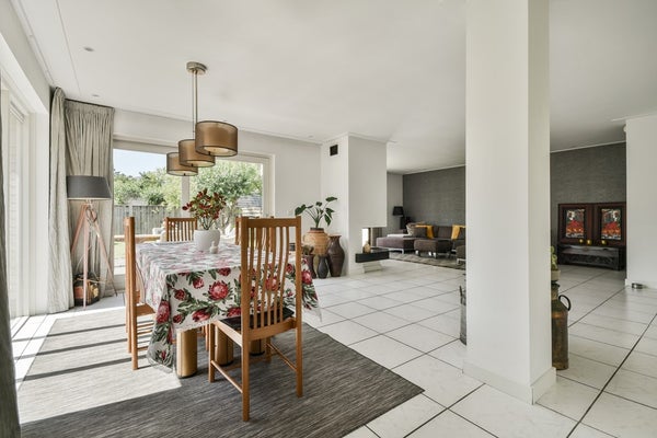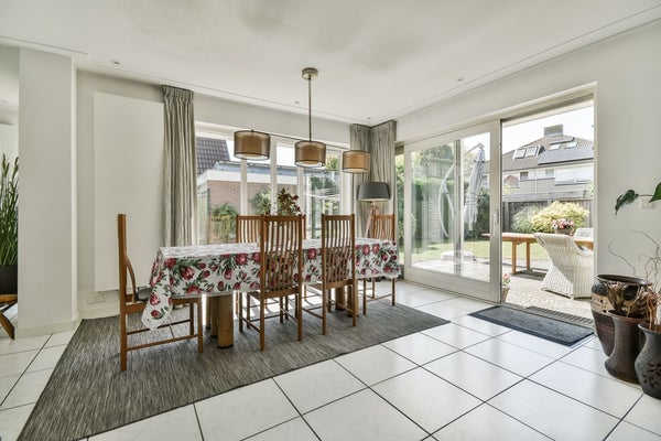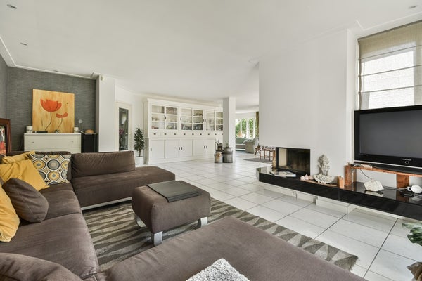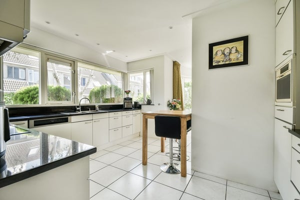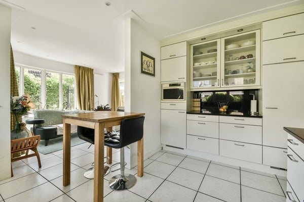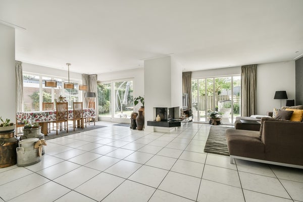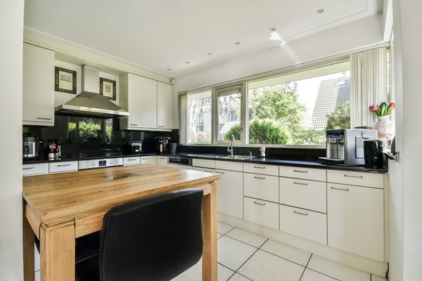Il soggiorno spazioso offre molta luce grazie alle grandi finestre e diverse opzioni di seduta. Tramite una porta scorrevole si accede al grande giardino soleggiato. La cucina aperta è dotata di un nuovo piano cottura a induzione, un nuovo forno, lavastoviglie, microonde e molte possibilità di stoccaggio.