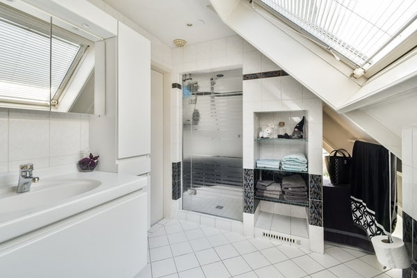 Al primo piano ci sono 4 buone camere da letto, la camera principale ha un bagno en suite con vasca, doccia separata, WC e un ampio lavabo con mobile. È presente anche un secondo bagno con doccia, WC e lavabo. Dal primo piano è accessibile la soffitta di circa 20m2.