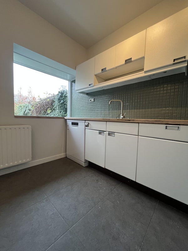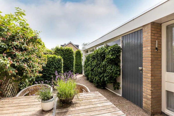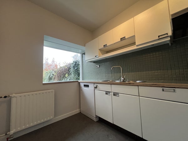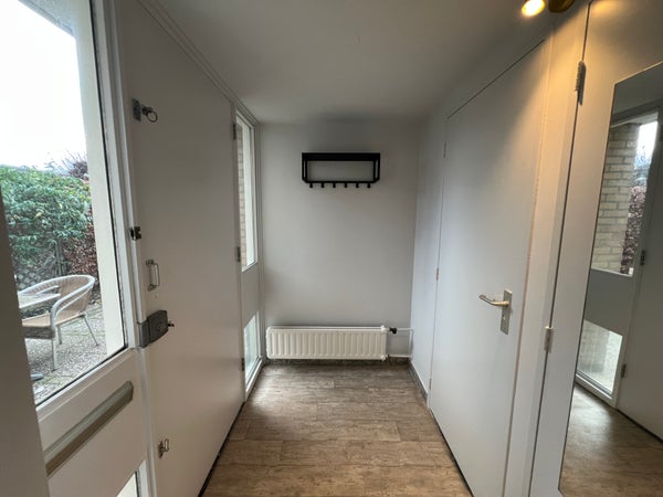 È facile parcheggiare sulla lunga corsia davanti alla casa, dove possono trovare posto diverse auto. Attraverso la porta d'ingresso si entra nel corridoio con accesso al quadro elettrico, al bagno, all'armadio e al soggiorno. L'area salotto e la zona pranzo formano un insieme piacevole e spazioso che emana immediatamente un'atmosfera accogliente. La grande porta scorrevole sul retro lascia entrare molta luce naturale e offre accesso diretto al giardino. La cucina adiacente è funzionalmente arredata con, tra le altre cose, un piano cottura elettrico, una cappa aspirante, un frigorifero e un doppio lavabo. Mentre cucini, puoi affacciarti sul giardino grazie alla finestra ampia.