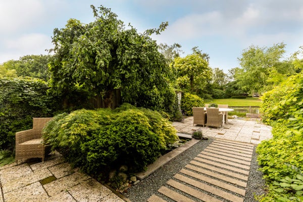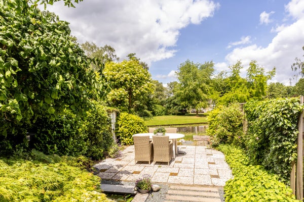 Il profondo giardino sul retro, esposto a nord, è un luogo incantevole per rilassarsi. Puoi affacciarti sull'acqua e puoi scegliere tra diversi posti a sedere grazie a due terrazze. Sul lato anteriore, la casa ha anche un ampio giardino soleggiato a sud con una terrazza che offre molta privacy. Il garage davanti è dotato di riscaldamento e elettricità ed è adatto sia per il parcheggio che per lo stoccaggio o una stanza hobby.