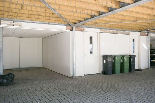 Parzialmente interrato, sotto il "deck" di tavole in composito, si trovano i due posti auto privati. Il (sicuro) garage è accessibile tramite un cancello gestito a distanza. I posti auto si trovano direttamente accanto all'abitazione. Dal garage si accede al ripostiglio interno e a una seconda entrata dell'abitazione. Il ripostiglio interno contiene i collegamenti per la lavatrice e dispone di una capacità di stoccaggio sufficiente.
