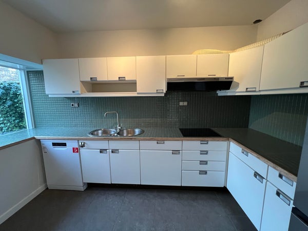 È facile parcheggiare l'auto nel lungo vialetto di fronte alla casa, dove possono trovare posto più auto. Attraverso la porta d'ingresso, entri nel corridoio con accesso al contatore elettrico, ai bagni, all’armadio e al soggiorno. L'area salotto e la zona pranzo formano insieme un insieme piacevole e spazioso che trasmette subito un'atmosfera domestica. La grande porta scorrevole sul retro lascia entrare molta luce diurna e offre un accesso diretto al giardino. La cucina adiacente è arredata in modo funzionale con, tra l'altro, una piastra elettrica, una cappa aspirante, un frigorifero e un doppio lavabo. Mentre cucini, puoi guardare fuori nel giardino grazie alla finestra ampia.