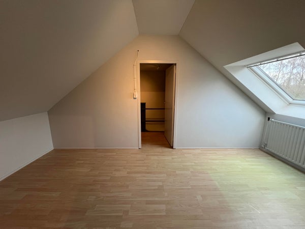 Una scala fissa ti porta all'ultimo piano. Qui arrivi prima in un corridoio con spazio di archiviazione dietro i muri inclinati. La quarta camera da letto ha una grande finestra che lascia entrare molta luce naturale ed è dotata di un proprio lavabo. Questa camera offre spazio sufficiente per un letto matrimoniale e mobili aggiuntivi.