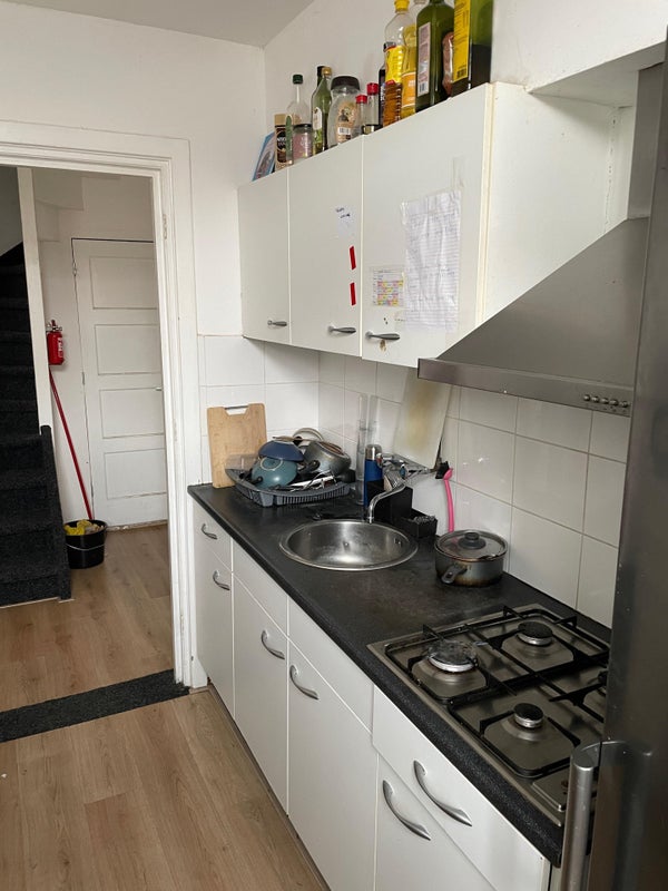 La chambre fait environ 16 m2 et dispose d'un lavabo privé. De plus, il y a une cuisine commune, une salle de bain avec machine à laver et sèche-linge, un 2ème toilette, un stockage pour les vélos et un grand balcon. Le logement est partagé avec 4 autres étudiants.