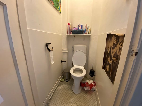 Vous entrez par le couloir partagé, depuis lequel le salon et la salle de bain sont accessibles. Il y a aussi des toilettes séparées dans le couloir. Le salon donne accès à la cuisine et au spacieux balcon. La cuisine est équipée d'une hotte aspirante, d'une plaque de cuisson au gaz, d'un four à micro-ondes, d'un réfrigérateur et d'un lave-vaisselle. Les espaces communs sont partagés avec deux autres résidents. La chambre concernée a une superficie de 11,12 m².