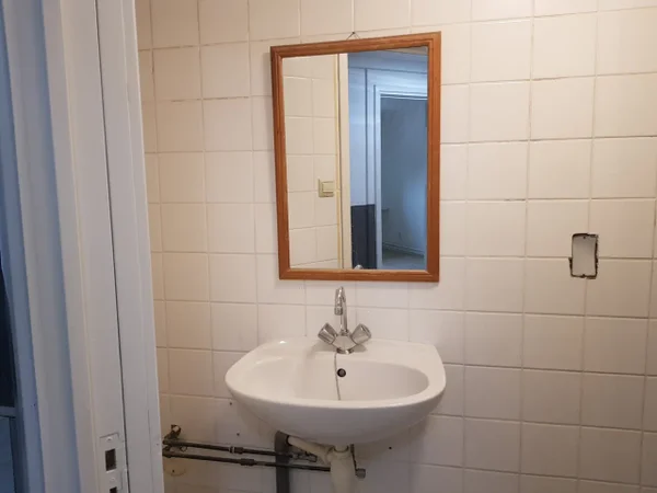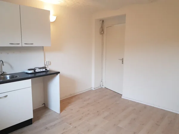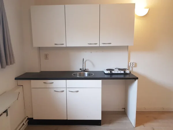 Chambre agréable avec un coin cuisine dans le sous-sol d'une maison étudiante conviviale. La douche, le lavabo et les toilettes sont partagés avec 3 autres étudiants. (total de 12 étudiants) Il y a une terrasse sur le toit commune et un stockage pour vélos disponibles.