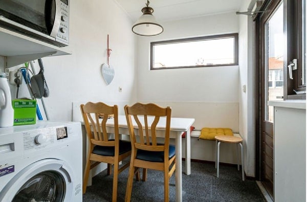 La cocina está equipada con una placa de cocción, extractor de aire, refrigerador y congelador y un acogedor comedor. Desde la cocina hay acceso a un amplio jardín y al cobertizo donde se pueden guardar las bicicletas.