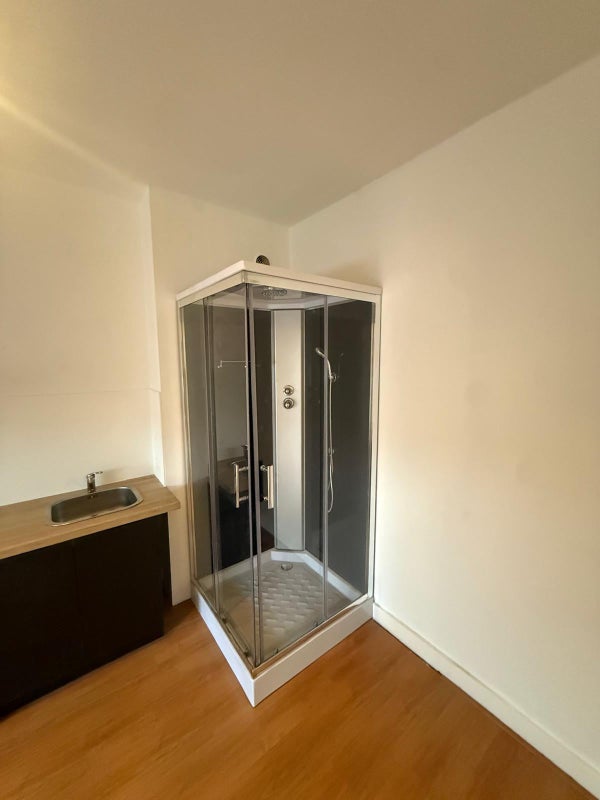La habitación 9 tiene una superficie de aproximadamente 14,4 m² y se alquila por €640,63 al mes, excluyendo €100 de gastos de servicio. Los gastos de servicio incluyen gas, agua, electricidad, internet y limpieza de las áreas comunes. Esta habitación cuenta, además de con una cocina privada, también con una cabina de ducha privada. El inodoro se comparte con los demás residentes.