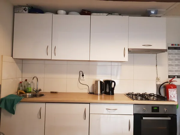 Bonita habitación con lavabo propio ubicada en el tercer piso de una casa de estudiantes. La cocina, la ducha y el baño son compartidos con otros estudiantes. También hay un espacio común para bicicletas disponible.