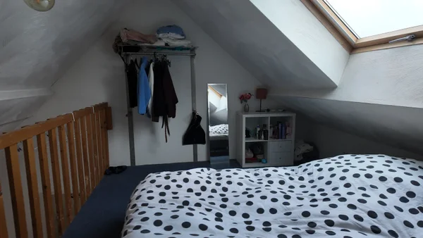 Bonita habitación con una sala de estar en el tercer piso con una cocina propia y un dormitorio separado en el cuarto piso en una casa de estudiantes. El baño se comparte con otros 4 estudiantes.