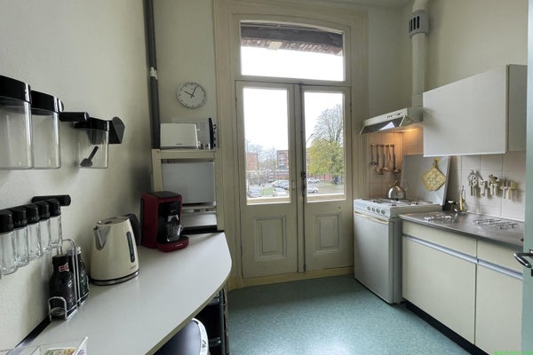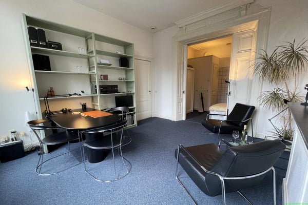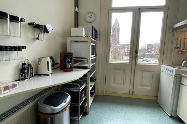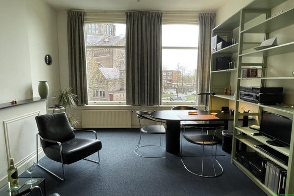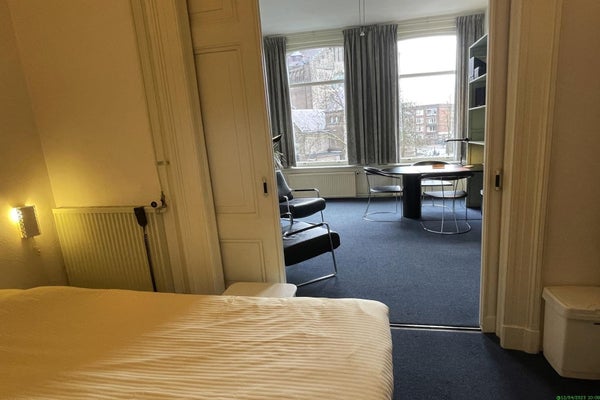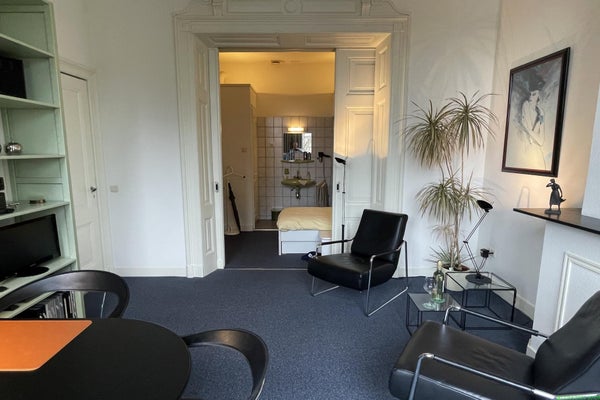 Ubicada en el querido barrio de Bottendaal, a pie del centro de la ciudad y de la estación central. El espacio habitable (aprox. 30m2) está situado en el primer piso de una casa señorial, a unos 7 minutos en bicicleta de la universidad y del hospital.