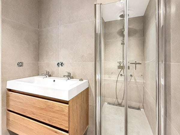 Die Wohnung verfügt über ein helles Wohnzimmer mit modernem Finish und praktischer Aufteilung. Die offene Küche fügt sich nahtlos ein und ist in einem zeitgemäßen Stil gestaltet. Das Schlafzimmer ist geräumig und bietet ausreichend Platz für ein Doppelbett und Stauraum. Das Badezimmer ist stilvoll und modern eingerichtet.