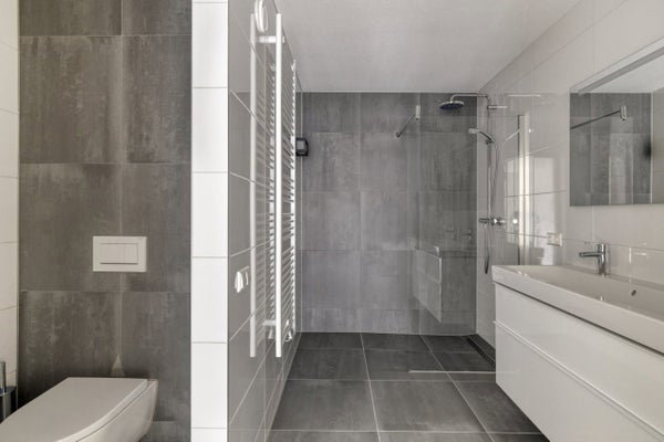Diese moderne Wohnung im Zentrum von Amsterdam bietet ein geräumiges Wohnzimmer und ein separates Schlafzimmer. Beim Betreten finden Sie den Flur mit einer Toilette und einem geräumigen Abstellraum mit Waschmaschinenanschluss. Die offene Küche verfügt über verschiedene Einbaugeräte und bietet große Fenster, die sich ganz öffnen lassen. Das geräumige Schlafzimmer grenzt an das Wohnzimmer und ist mit Schiebetüren abgetrennt, die dieselben schönen Fenster wie im Wohnzimmer haben. Das moderne Badezimmer ist mit einem Doppelwaschtisch und einer begehbaren Dusche ausgestattet. Das Parken ist einfach in der Tiefgarage unter dem Gebäude, die Kosten für den Stellplatz betragen etwa 207,50 Euro pro Monat. Diese Wohnung, die sich im 9. Stock befindet, hat eine Wohnfläche von 109 m² und ist zum Mietpreis von 2260 Euro pro Monat verfügbar.