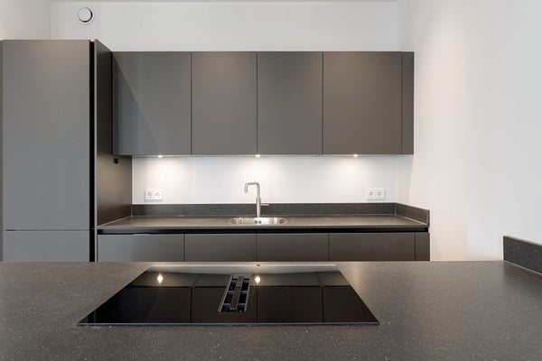 Von der Straße aus gelangt man über das neu gestaltete Treppenhaus in das erste Stockwerk. Flur mit Garderobe und separatem WC sowie Intercom-/Videoanlage. Auf der Rückseite des Gebäudes befindet sich das geräumige Wohnzimmer (35 m2) mit offener Küche, ausgestattet mit einem eingebauten Ofen mit Mikrowelle, einem Quooker und einer Kühl-Gefrier-Kombination. Über die französischen Türen gelangt man auf den Balkon/Terrasse von 10 m2.