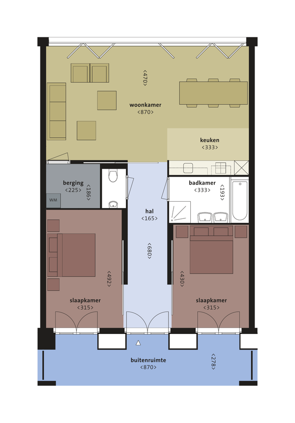 Dies ist eine herrliche 3-Zimmer-Wohnung mit schönem Außenbereich! Beim Betreten des Flurs haben Sie Zugang zu allen Räumen. Auf der linken und rechten Seite befinden sich die Schlafzimmer, die Zugang zum Außenbereich haben. Im Flur gibt es ein separates WC und ein Badezimmer mit Badewanne, Doppelwaschtisch und separater Dusche. Das Wohnzimmer hat eine wunderschöne Fensterfront, deren Fenster ganz geöffnet werden können. Die Küche ist mit verschiedenen Einbaugeräten ausgestattet. Im Wohnzimmer befindet sich ein großer Abstellraum mit Waschmaschinenanschluss. Und in der Tiefgarage mieten Sie einen Parkplatz.