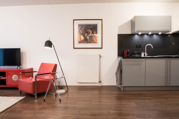 Beim Betreten finden Sie den Flur, von dem aus Sie Zugang zu allen Räumen haben; Waschküche, Küche/Wohnzimmer, separates WC, Badezimmer und 2 Schlafzimmer. Beide Schlafzimmer befinden sich auf der Vorderseite der Wohnung und bieten Blick auf das IJ. Das große Schlafzimmer ist mit einem Doppelbett, einem Einbauschrank und einem Kleiderschrank ausgestattet. Das andere Zimmer verfügt über ein Schlafsofa und einen Schreibtisch. Das geräumige Badezimmer verfügt über eine begehbare Dusche und Badezimmermöbel. In der Waschküche finden Sie auch genügend Stauraum.