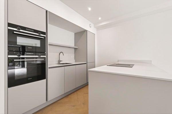 Die Wohnung bietet zwei gut geschnittene Schlafzimmer (wobei das Hauptschlafzimmer und das Badezimmer im Souterrain liegen).