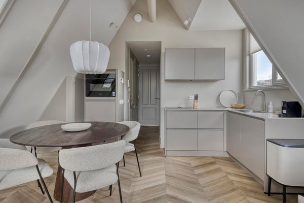 Dieses luxuriöse 2-Zimmer-Apartment mit ca. 45 m² befindet sich im vierten Stock eines vollständig renovierten Gebäudes in der Derde Helmersstraat 26. Die Renovierung wurde 2025 abgeschlossen und mit Blick auf Details, Qualität und Komfort durchgeführt.