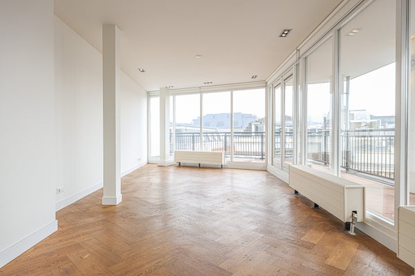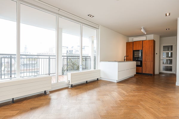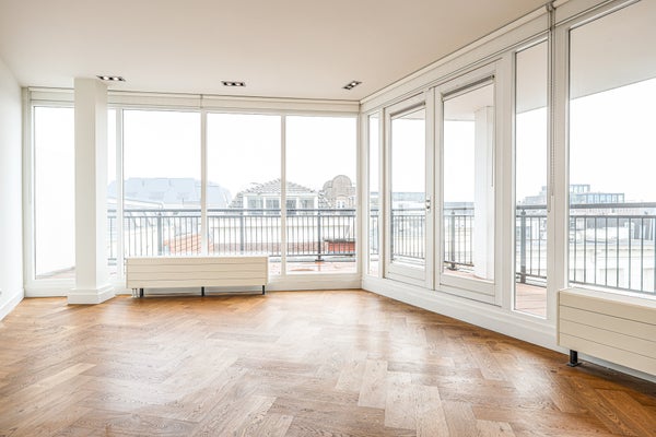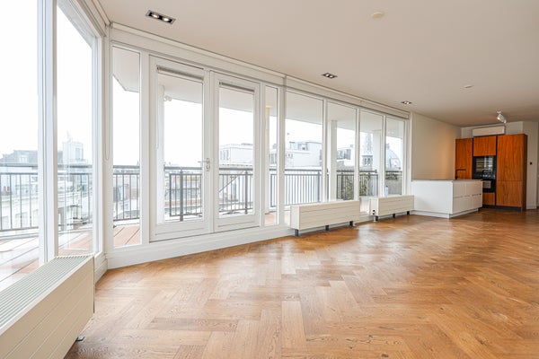 Hochwertige neu gebaute, luxuriöse, unmöblierte Wohnung von ca. 90 m². Zwei Schlafzimmer und ein Balkon, der zwei Seiten der Wohnung umgibt. Privateingang mit gesichertem Tor. Befindet sich im vierten Stock, der über Treppen oder einen privaten Aufzug erreichbar ist. Im Stadtzentrum von Amsterdam in einem authentischen, autofreien Gebiet und im Einkaufsviertel gelegen. Nur einen Steinwurf vom Dam entfernt. Gut an den öffentlichen Nahverkehr angebunden und nur 5 Minuten zum Hauptbahnhof Amsterdam.