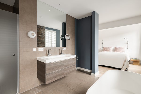 • Das Hauptschlafzimmer verfügt über ein Badezimmer ensuite mit Badewanne, Doppelwaschtisch, Dusche und WC sowie einen großzügigen Ankleideraum.