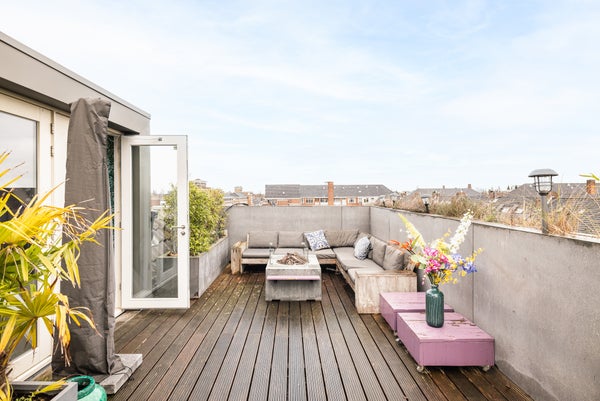 Hier befindet sich ein angenehmer offener Raum, der derzeit als TV-Zimmer/Atelier genutzt wird. Diese Etage bietet zahlreiche Möglichkeiten für unterschiedliche Funktionen. Angrenzend liegt die schöne Dachterrasse nach Osten, mit wunderschönem Blick über Amsterdam und fast den ganzen Tag Sonne.
