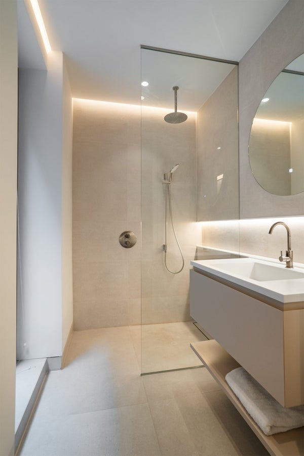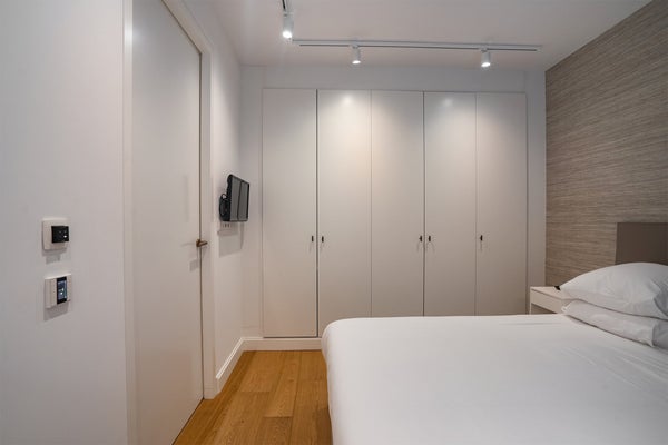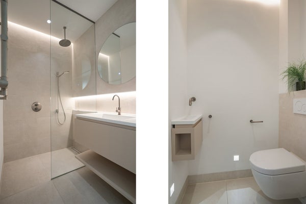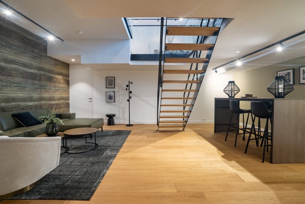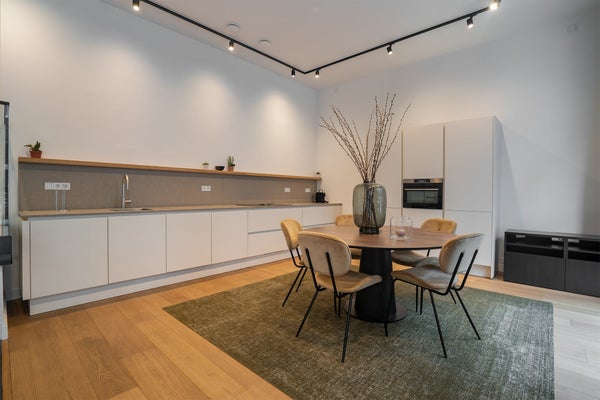 Direkt nach dem Betreten der Wohnung findet man den großen und hellen Essbereich, der mit einer großzügigen, voll ausgestatteten offenen Küche verbunden ist. Die Küche verfügt über eine Geschirrspülmaschine, einen Kühlschrank & Gefrierschrank, einen Quooker (sofort kochendes Wasser), eine Nespresso-Maschine und einen Induktionsherd mit integrierter Dunstabzugshaube.